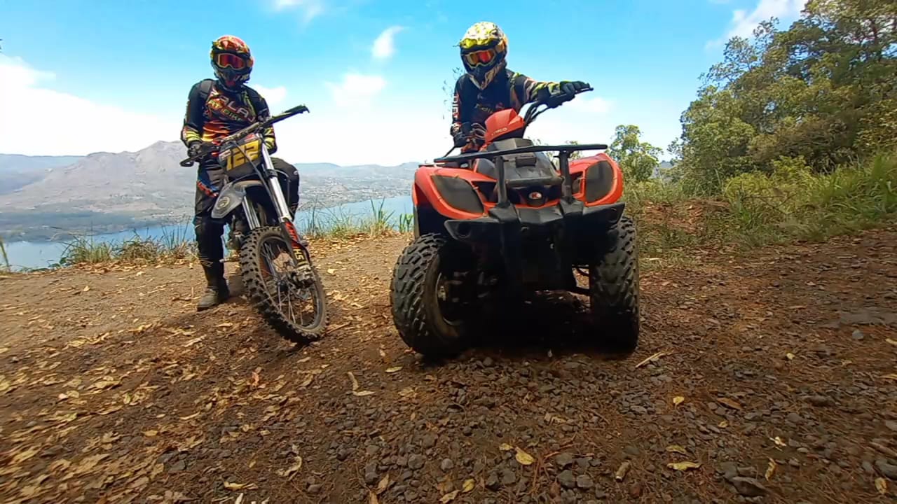 This is a full-day tour for two people with two different gear explore the same trail. The trail is a combination of The Kintamani Black Lava and The Kintamani Forest track.